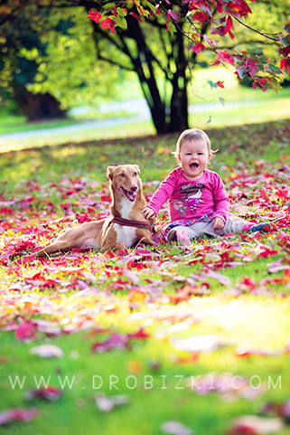 Že samo sonce in topli jesenski odtenki v Volčjem potoku imajo čaroben učinek, če je pa tu še Martina s svojim objektivom..., ki ujame navihane poglede, zasanjano igranje z odpadlimi listki, srečne nasmehe v očijevem naročju... In spet končni izdelek samo za v okvir!!!! Tako nam od vsega navdušenja nad fotografijami ni preostalo drugega, kot da čez mesec dni poskusimo še pri naši novi pridobitvi, slikanju novorojenčka.