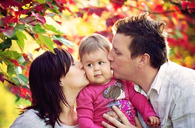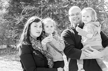 Navihana deklica, poskočna psička, mamica s trebuščkom in očka, ki je skrbel za vse tri.